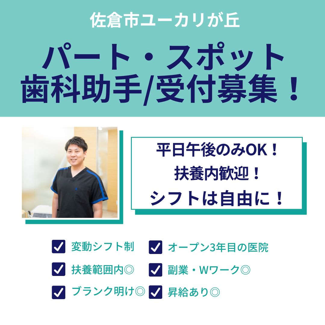スポット&パート歯科助手募集!平日午後のみOK!扶養内・副業・Wワーク歓迎!